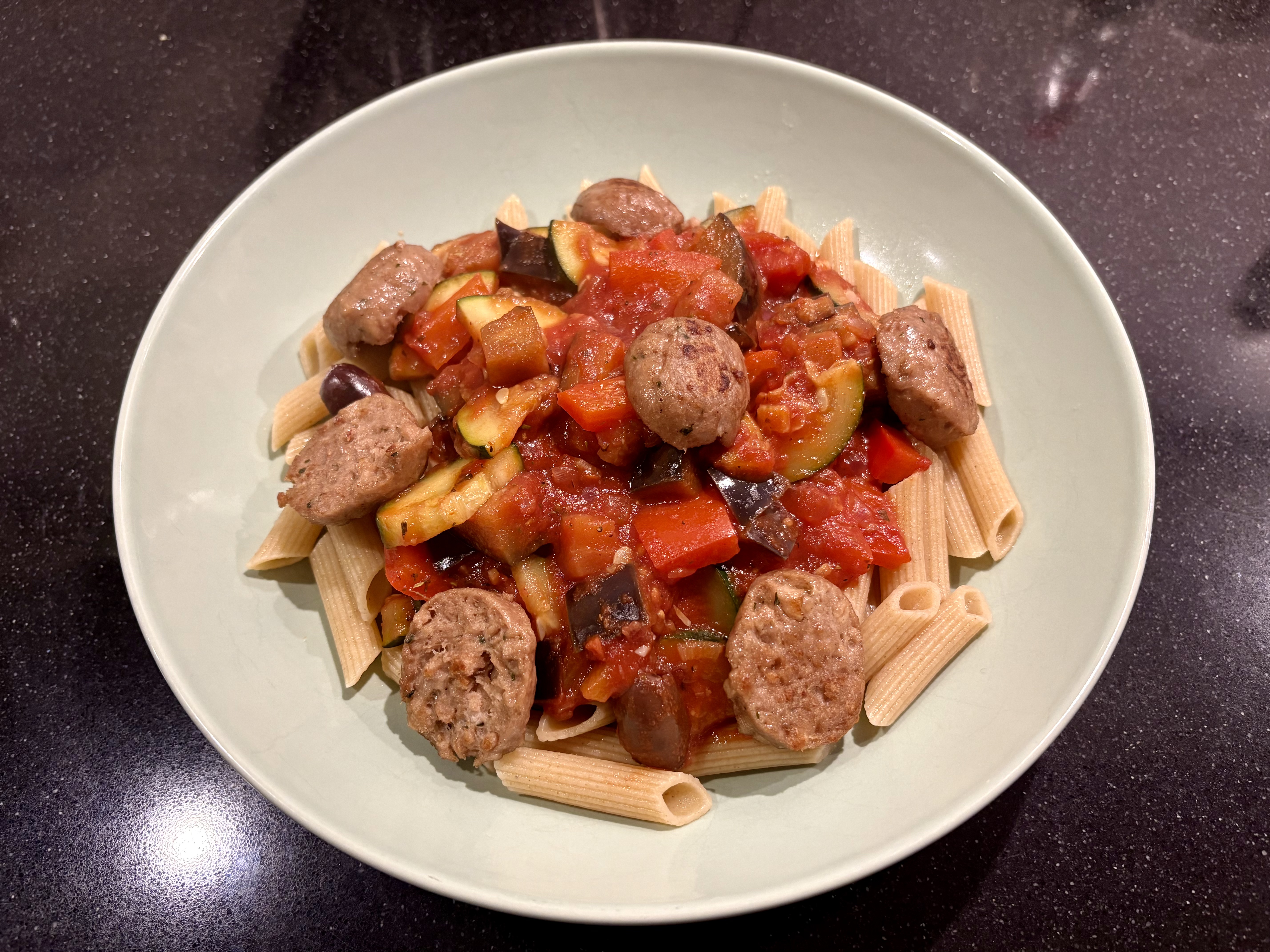 - Pasta (penne, 75 g pp)